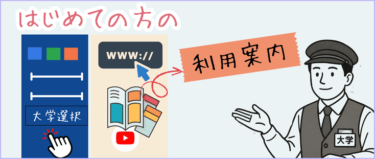 利用案内をご覧ください日本の大学HPをはじめて利用される場合—-