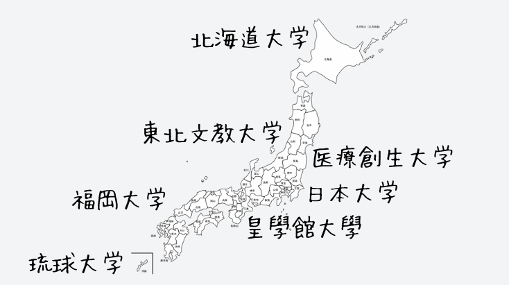 日本の大学名を、土地の名前(都道府県名など)や特徴的な言葉が入った名前などの切り口から調べてみました。